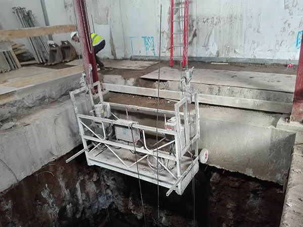 Sí. Disponemos de soluciones específicas para interiores y patios estrechos. Para trabajos puntuales o de pequeño alcance montamos cabinas colgantes unipersonales (MONOCABINAS) Tractel Alta Solo (1 m de ancho) con motores Tirak X300 mono o trifásicos; ofrecen 120 kg de carga útil, un solo punto de suspensión —lo que facilita moverse por una misma fachada o patio— y todo lo exigible en seguridad: marcado CE, cable de seguridad, bajada de emergencia ante corte eléctrico, toma 230 V y paro de emergencia. Incluso entran en huecos desde 1,2 m × 1,2 m, donde otros sistemas no caben.