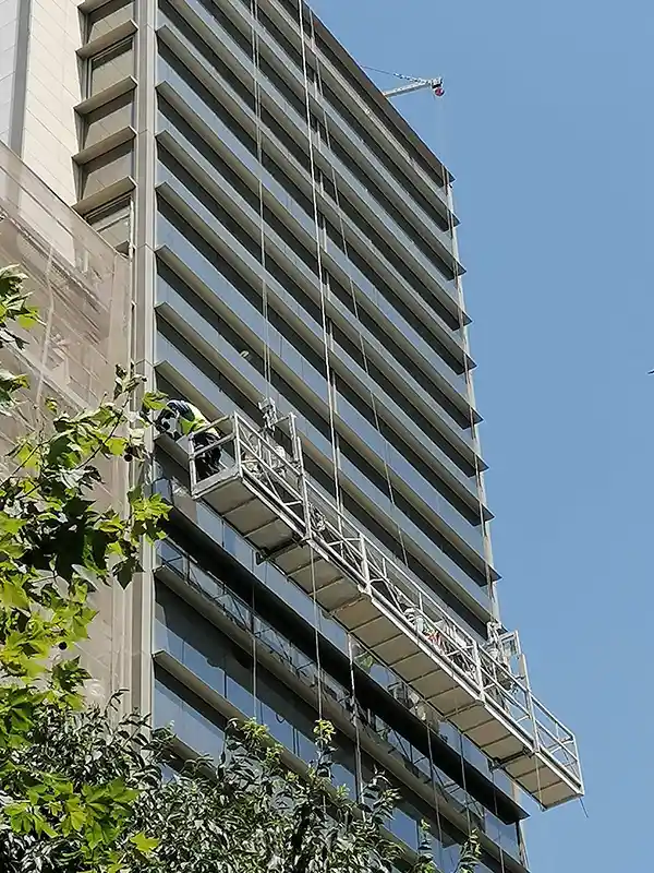 En la práctica, estudiamos el edificio, calculamos cargas y anclajes, elegimos la longitud de cable adecuada y montamos. Si el viento, la geometría o el acceso exigen medidas extra, las incorporamos (anclajes intermedios, topes, plan de rescate). Por eso decimos que la altura nunca es un problema: adaptamos el equipo a tu obra, no al revés. Nuestros andamios en alquiler y las cabinas suspendidas a la altura que necesites.